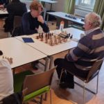 Es ließen sich aber auch Yoliano und Alica nicht lange bitten, welche am sechsten und respektive fünften Brett viel zu weit unten gesetzt wurden. Beide überspielten ihre Gegner mühelos, sodass eine Niederlage schon nach kürzester Zeit nicht mehr möglich war. Yoliano konnte mit einem tollen, wenn auch ungewöhnlichem Matt die Partie beenden. Wer selber einmal überlegen möchte, wie hier Matt gesetzt wird kann dies gerne tun, auch wenn es sehr einfach ist. Die Lösung wird am Ende des Artikels gezeigt.