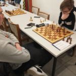 Doch diese Spiele waren ein Auf und Ab der Gefühle. Noah hat sich in einer Gewinnstellung übernommen und ist von dieser in eine Remisstellung und kurz darauf in eine Verluststellung abgerutscht. Doch zum Glück übersah sein Gegner trotz einer 8-minütigen Überlegung den Gewinn von zwei Bauern, weshalb Noah noch ein Remis sichern konnte. Ein Ergebnis, welches ihn sehr gestört hat. Jürgen hätte den Läufer seines Gegners gewinnen können da dieser sein Läuferopfer falsch berechnet hatte. Jürgen entschied sich aber seine Partie sicher zu spielen, doch seine geringe Zeit wurde ihm zum Verhängnis, weshalb er die Partie verlor.