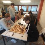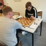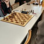 Es sollte noch eine Weile dauern, bis sich die nächste Partie entscheidet, aber unsere ersten drei Bretter sahen aus, als würden sie klar besser stehen. Max gewann seine Partie, in welcher er zum richtigen Zeitpunkt seinen starken Angriff auf den gegnerischen König in drei Mehrbauer konvertierte. Da er drohte sich eine neue Dame zu holen musste sein Gegner einen Turm opfern, weswegen er aufgab.