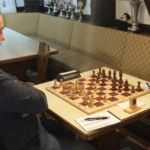 Doch der erste Schock kam am sechsten Brett. Diego ließ in seinem Endspiel, Läufer + fünf Bauern gegen Springer und fünf Bauern, seinen Läufer ungedeckt stehen, was Olaf Pothenick sogleich ausnutze. Die Enttäuschung stand Diego ins Gesicht geschrieben und er spielte seine Züge nur noch schnell nach vorne, um mit dem Spiel abzuhaken. Glücklicherweise opferte Olaf Pothenick seinen Springer für einen entlegenen Freibauern, was zwar auch nicht falsch ist, aber der Sieg wurde damit deutlich schwieriger zu realisieren. Und so konnte Diego noch das Remis halten und die erste Partie des Tages ging friedlich aus.