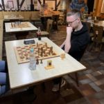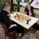 Zino war der mit Abstand jüngste Teilnehmer und konnte punktgleich mit Artem den fünften Platz belegen. Außerdem erhielt er den Jugendpreis und darf somit zweimal bei chess4u mit dem Internationalen Meister Christian Braun trainieren. Jonas konnte alle seine Partien gewinnen und entschied auch die Duelle mit den direkten Verfolgern souverän für sich. Außer in der letzten Partie gegen Peter Herröder wurde es spannend, weil ein Springer verloren ging.